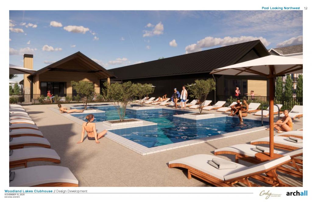 The site also features a retail center with high-end coffee and donuts, Johnson’s Ice Cream, and other amenities. The apartment complex itself includes two-story buildings, a fitness center, and pickleball facilities, all within walking distance to the nearby amenities. The name of the apartment complex is to be determined.
